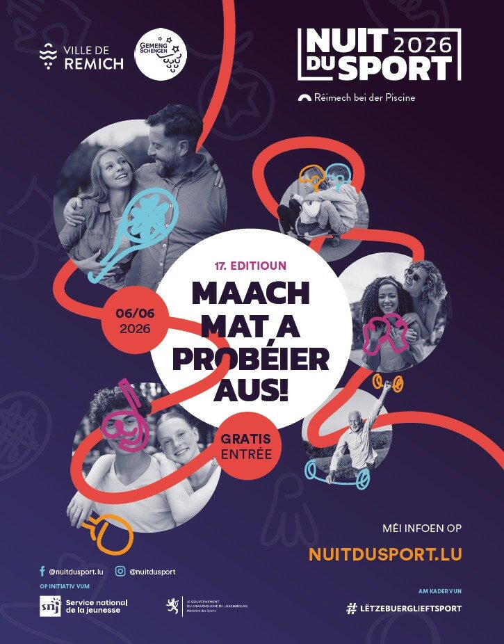 In collaboration with the municipality of Schengen, this year’s Night of Sport will take place for both municipalities next to the open air swimming pool in Remich.